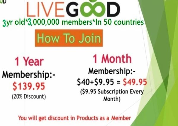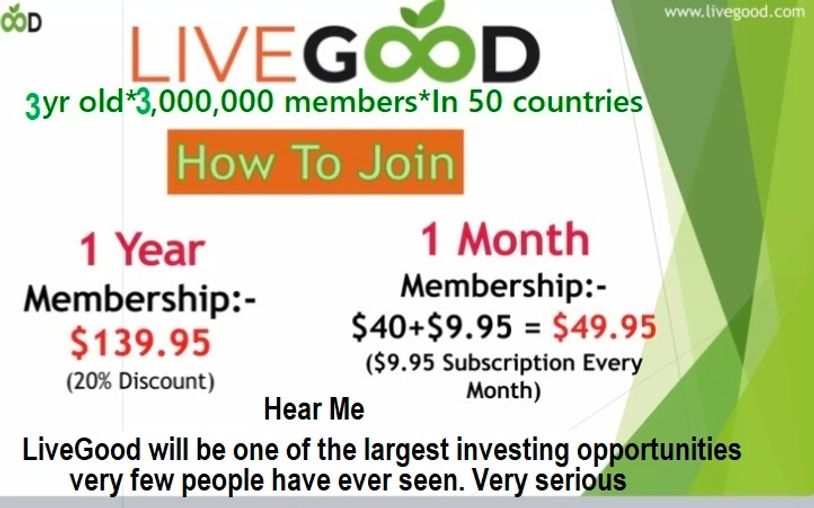 WE GIVE LIVEGOOD $49.95 THEN $9.95 MONTHLY OR $139.95 FOR THE YEAR. AS LIVEGOOD GROWS, LIVEGOOD WILL REPAY YOU UP TO $2,047 "MONTHLY."